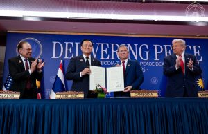 Malaysia’s Prime Minister Anwar Ibrahim and U.S. President Donald Trump witness the signing of a peace agreement between Cambodia and Thailand...
