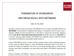 Public Notice: Termination of Sponsorship and Media Recall with Metabank